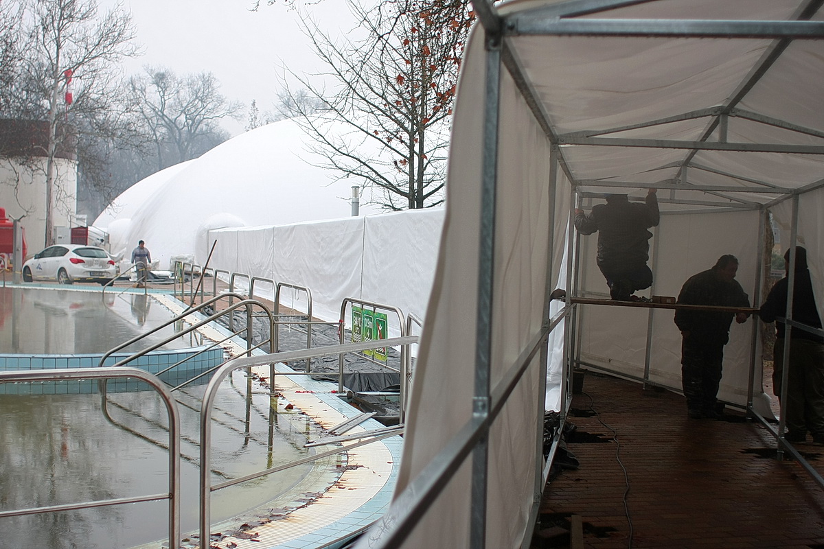 2011-ben teljesen megújult a nyíregyházi Parkfürdő. Az 50 méteres úszómedence környezete átalakult és a medence szintjét úgy emelték meg, hogy a létesítmény komolyabb sportesemények elvárásainak is megfeleljen. Az átalakítások után azonban a medence régi, téli sátrát már nem lehetett használni. A Sóstógyógyfürdők Zrt. ezért 3 éve tervezi, hogy új sátrat vásárol. A beruházáshoz idén lett elegendő forrás. Magyarországon készült egy, a nemzetközi piacon is elismert cégnél a sátor. A műanyag fedés duplafalú és a teteje fényáteresztő anyagból készült, ezek biztosítják a költséghatékonyságot. Az új sátorhoz a Sóstó-Gyógyfürdők Zrt. egy 2,5 tonnás automatizált gázkazánt vásárolt. A hővisszanyerős, nagy hatékonyságú berendezés gondoskodik arról, hogy a legnagyobb hidegben is meleg legyen a sátor alatt.