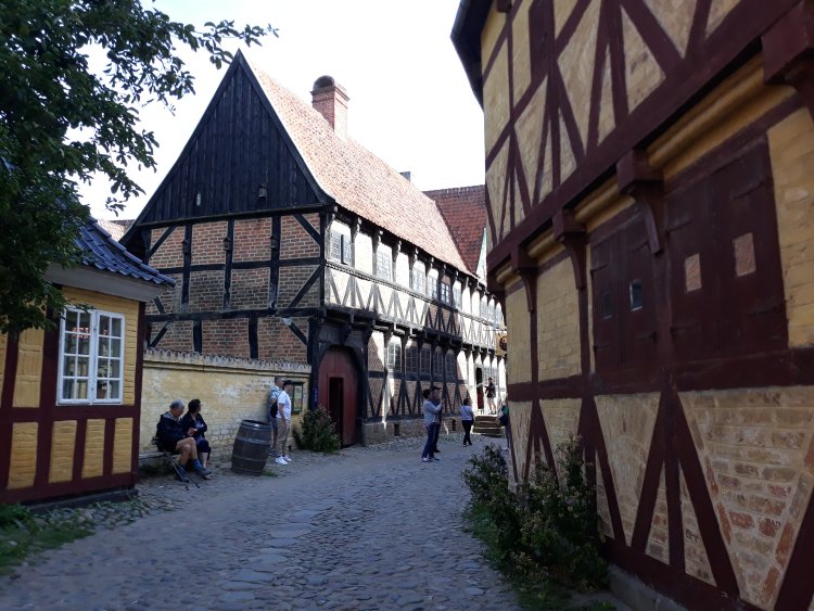 2022. szeptember 6–9. között jártunk Aarhusban, s az itt eltöltött idő alatt négyszer kerestük fel a skanzent, amely mindig újabb és újabb meglepetéssel szolgált. Így utolsó alkalommal megfigyelhettünk egy múzeumpedagógiai foglalkozást, ahol a gyerekek az 1800-as éveknek megfelelő öltözékben éppen mosáshoz készülődtek, illetve az iskola mögötti kertben a fáról lehullott gyümölcsöt gyűjtötték össze.