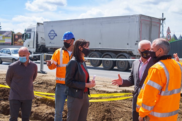 „Jelen pillanatban a közművek kiváltásán dolgozik a kivitelező, ivóvíz-, gázvezetéket, villamosenergia-kábeleket kell majd cserélnie, ez néhány napon belül elkészül és akkor utána, mikor ezekkel végzett, elkezdi majd a körforgalomnak a pályáját építeni, aztán aszfaltozás következik és szeptemberre befejeződik a projekt. A projekt nemcsak a körforgalom kialakítását, hanem a közvilágítás megújítását is magában foglalja, illetve egy buszmegállópár is épülni fog majd a beruházás részeként” – nyilatkozta Kiss Boglárka, a Nemzeti Infrastruktúra Fejlesztő Zrt. szóvivője a hétfő délelőtti bejáráson.