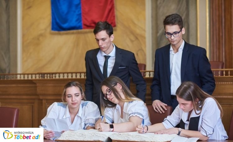 Kedden 20 nyíregyházi középiskola végzős osztályainak névsora került be a 260 oldalas sötétbarna bőrkötéses, rézveretes sarkokkal és rézcsattal ékesített nagykönyvbe.