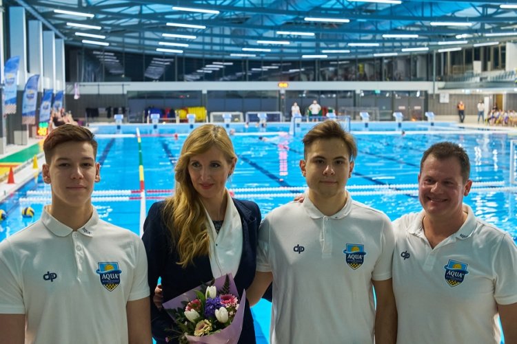 A mérkőzés előtt kis ünnepségre került sor. Dr. Szabó Tünde sportért felelős államtitkár az Aqua SE fiatal, tehetséges játékosait köszöntötte.