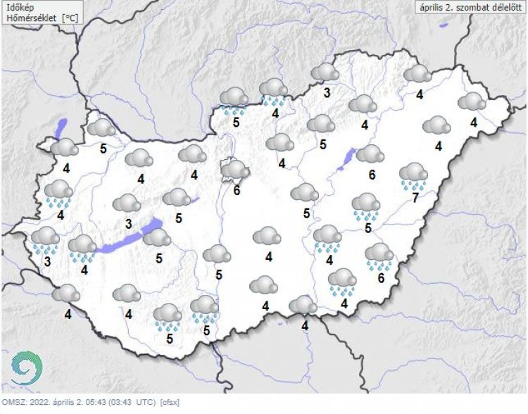 Jobbára borult lesz az ég. Eleinte a déli országrészben, később másutt is – főleg délután – több helyen újra várható eső – írja az Országos Meteorológiai Szolgálat.