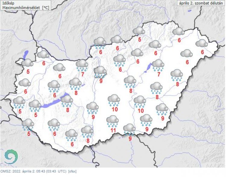 Az északi, északnyugati szél többfelé lesz élénk, az Észak-Dunántúlon és a Bodrogközben időnként erős, de Nyugat-Magyarországon viharos lökések is lehetnek. A legmagasabb nappali hőmérséklet 4, 11 fok között valószínű. Késő estére 0 és +5 fok közé hűl le a levegő.