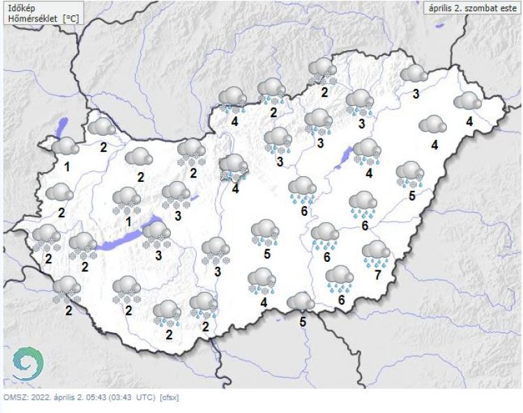 Estére borult marad az ég, de a hajnali, reggeli órákban észak felől már elkezd vékonyodni a felhőzet. Estétől az esőt az északi megyékben és a Dunántúlon havas eső, később vizes, tapadó hó váltja fel.