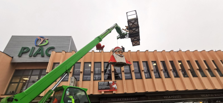 Kihelyezték Nyíregyháza egyik kedvelt ünnepi jelképét: a Mikulás ismét a Búza téri Piaccsarnok tetejéről integet a város lakóinak.