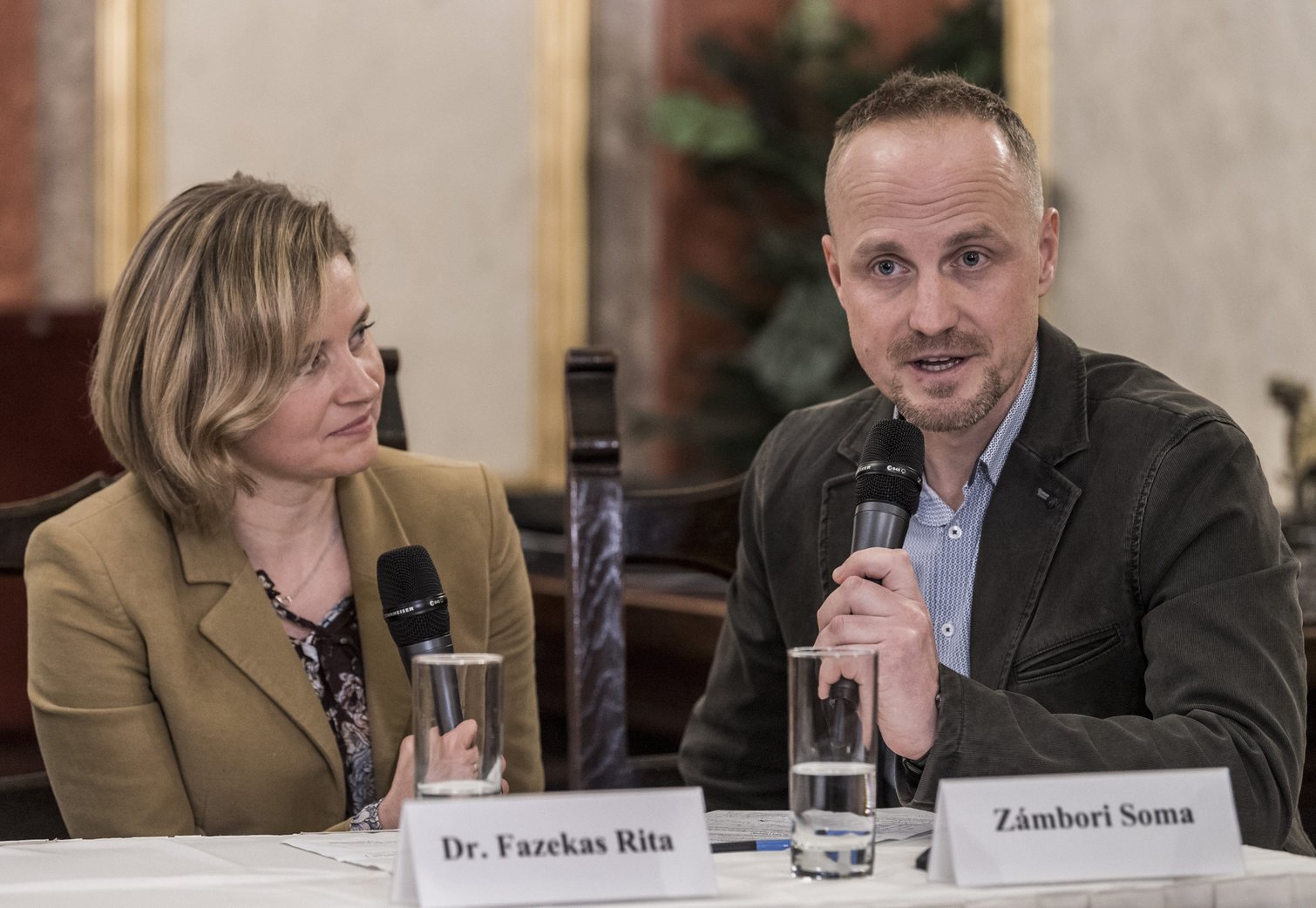Zámbori Soma színművész és felesége, Fazekas Rita, a házasság hete idei arcai a program nyitó sajtóeseményén a budapesti I. sz. Központi Házasságkötő teremben. (MTI Fotó: Szigetváry Zsolt)