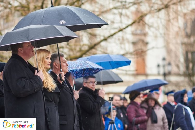 Ünnepélyes zászlóbehozatallal, beszédekkel és koszorúzással telt a március 15-e Nyíregyházán