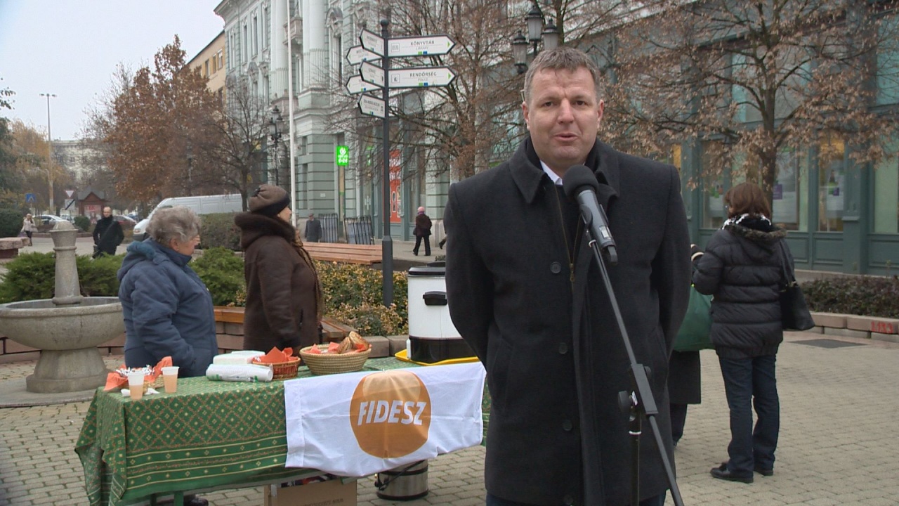 Tóth Imre, a párt városi alelnöke elmondta, a már hagyományos rendezvényen így kívánnak békés karácsonyt és boldog új évet a nyíregyháziaknak. Hangsúlyozta, a Védjük meg Magyarországot! aláírásgyűjtő akciót az ünnepek előtt az utcákon már nem folytatják, de a további támogató aláírásokat szívesen fogadják az aktivistáik.