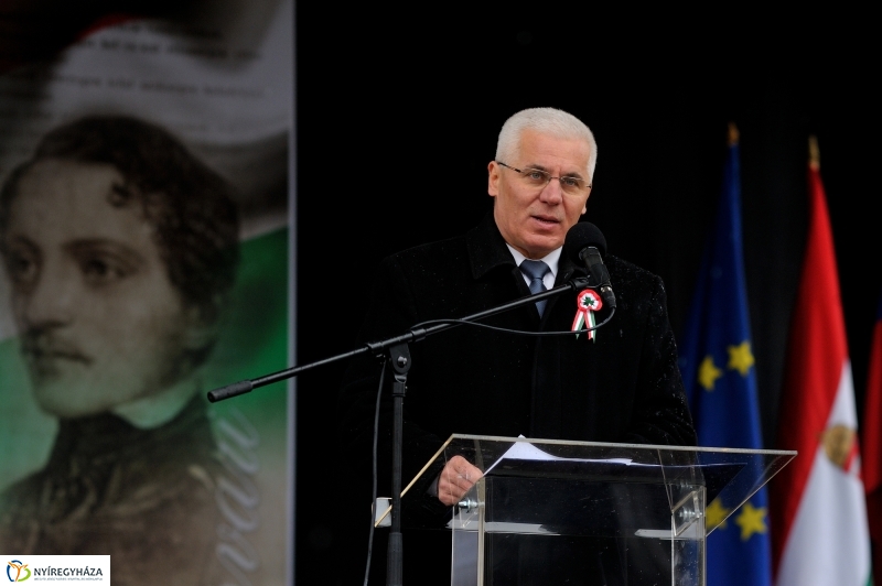 Az 1848/49-es forradalom és szabadságharc 168. évfordulója alkalmából szervezett városi ünnepséget Nyíregyházán a hagyományoknak megfelelően a Kossuth téren tartották meg. A rendezvényen dr. Kovács Ferenc, Nyíregyháza polgármestere ünnepi beszédében azt mondta: az 1848/49-es forradalom és szabadságharc történelmünk egyik legmeghatározóbb eseménye, ami nagy hatással volt Nyíregyháza életére is. 168 éve büszkén emlékezünk ezen a napon határon innen és túl azokra, akik szembe mertek szállni az elnyomással, s ezzel megváltoztatták nemzetünk sorsát. A szabadságharc leveréséig és azt követően is sok áldozatot kellett hoznia és megpróbáltatást kellett kiállnia ennek a városnak és lakosságának. De az áldozat nem volt hiábavaló.