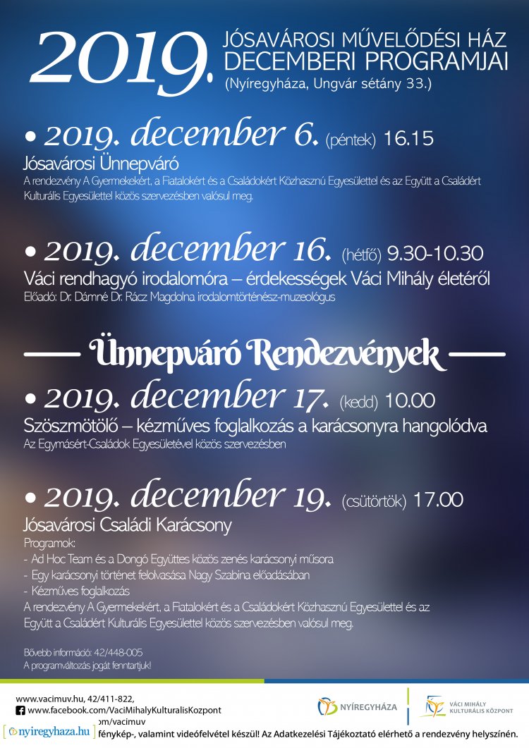 Ünnepváró rendezvények Nyíregyházán, a Jósavárosi Művelődési Házban