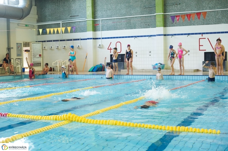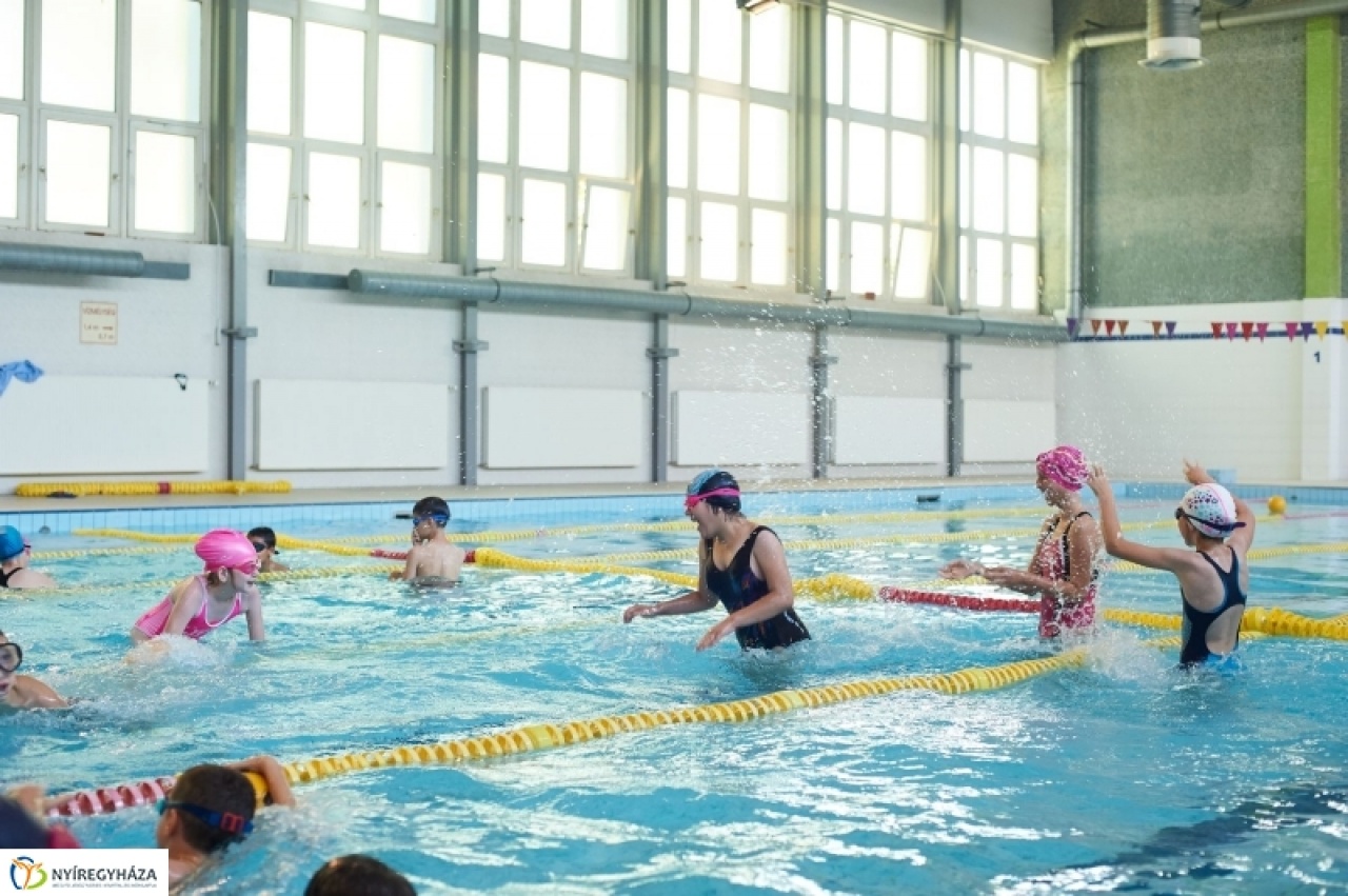 A gyorsúszás lábtempóját is gyakorolták a gyerekek az Arany János Iskola uszodájában. Lefeszített lábbal haladtak a kötéllel kijelölt medenceszakaszig. Technikájukat Szondy György edző csiszolgatja az öt nap alatt, amíg részt vesznek a táborban. Nyíregyháza Önkormányzata ugyanis ebben az évben, hasonlóan az előzőhöz, 20,4 millió forinttal támogatta a helyi általános iskolások napközis táborozását. Hét helyszínen, nyolc turnusban így 1600 gyermek töltheti hasznosan, felügyelet mellett a nyári szünidő egy részét. Ennek része az úszótábor is, ahol öt héten át várják a gyerekeket. Jelenleg a második turnus 65 kisiskolása ismerkedik az úszás alapjaival.