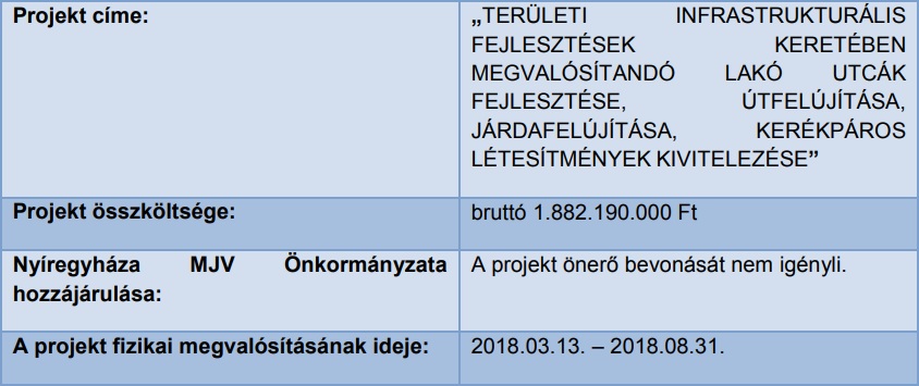 Út, járda és kerékpárút fejlesztések Nyíregyházán