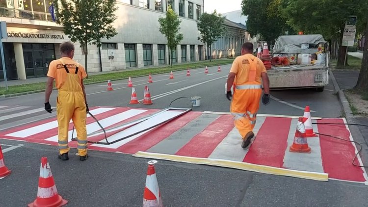 Útburkolati jelek festése zajlik a város több pontján