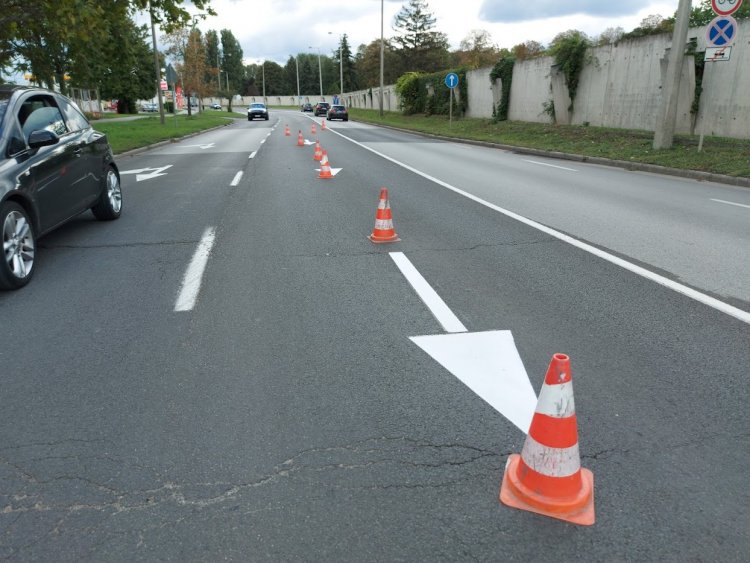 Útburkolati jeleket festettek kedden a Korányi Frigyes utcán, a Krúdy Gyula utcánál.