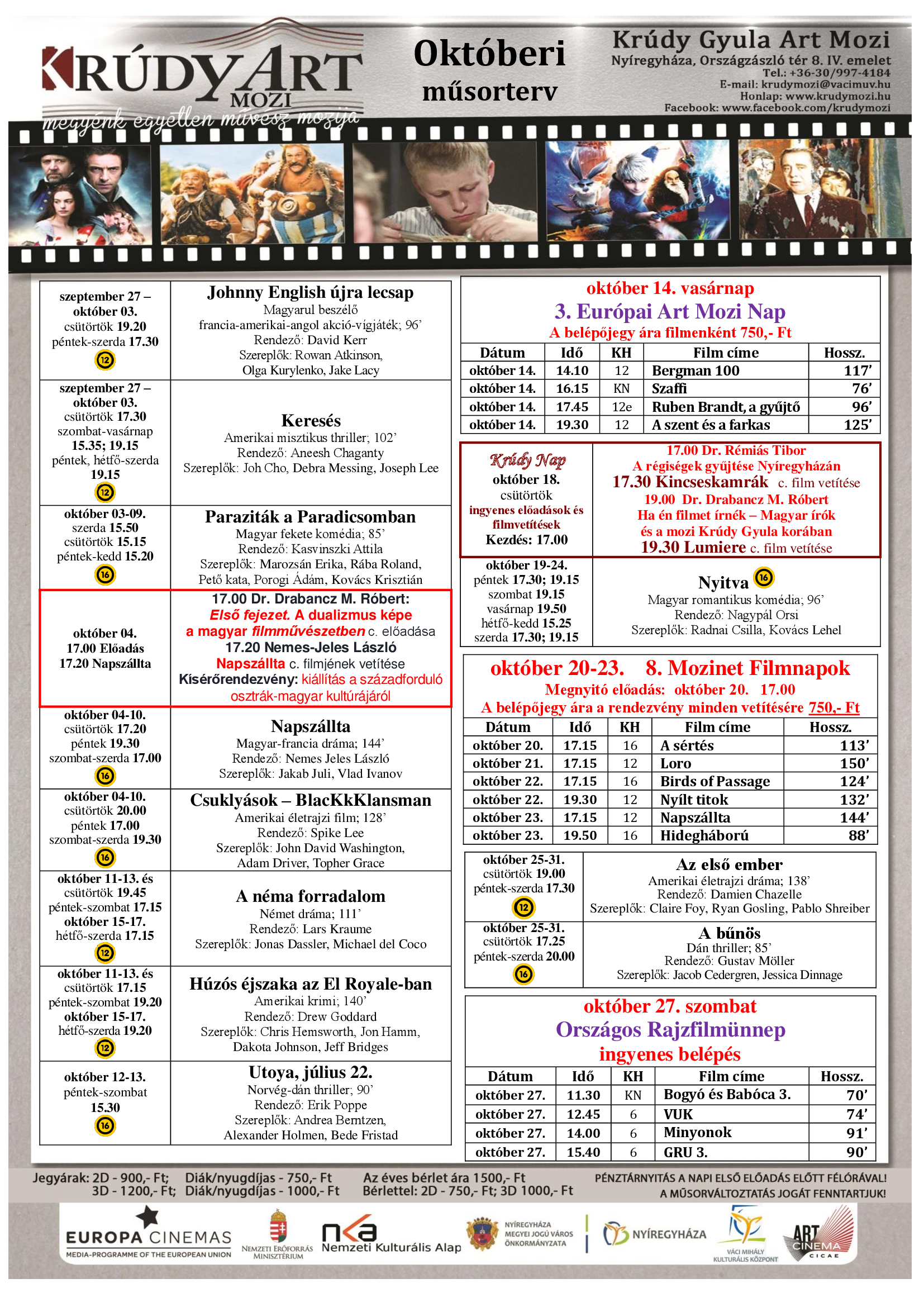 A Krúdy Art Mozi aktuális heti programja kiegészült az Utoya, július 22. című filmmel, amit október 12-13-án (pénteken és szombaton) 15.30 kezdettel vetítenek.