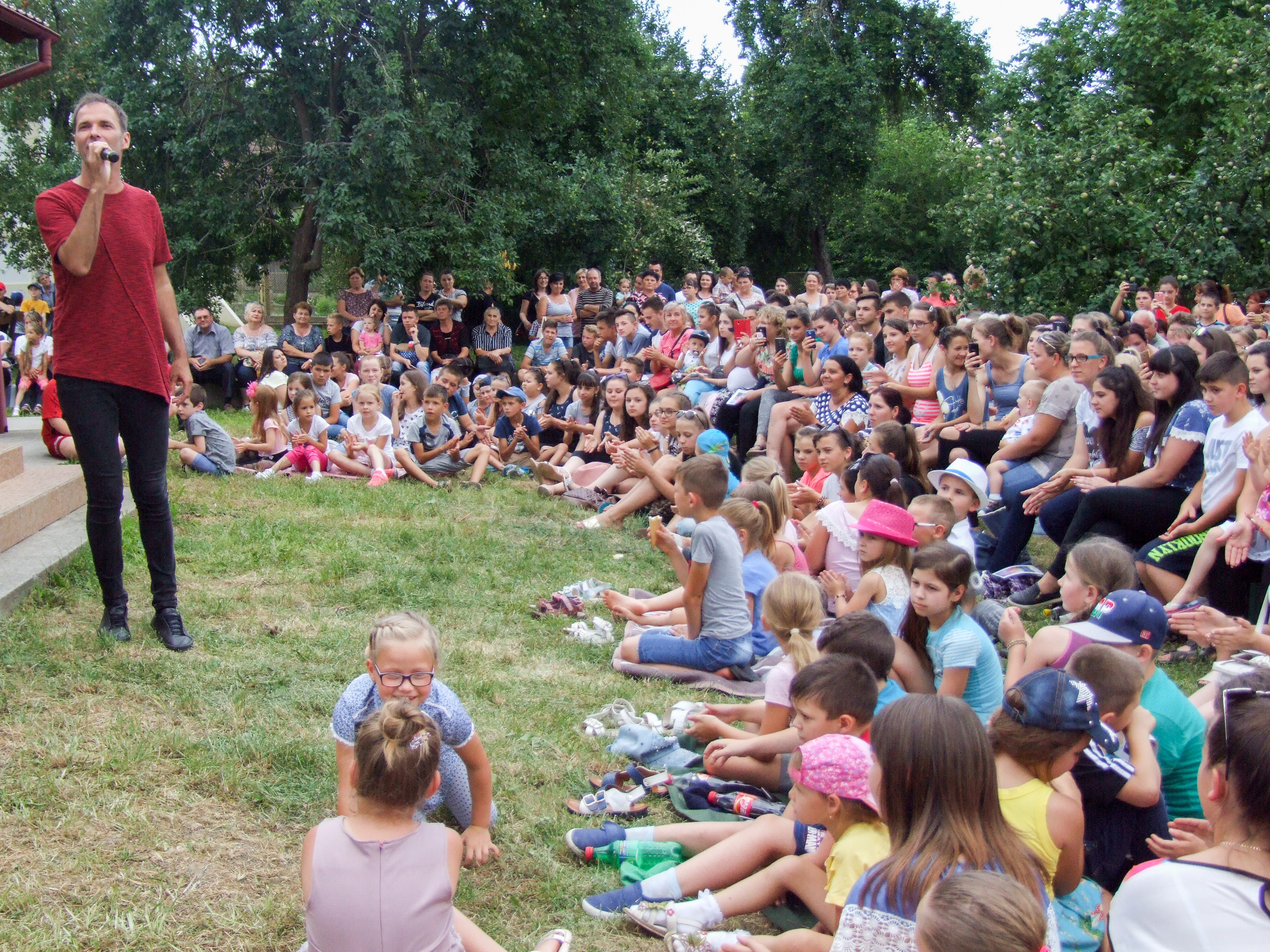 A finom töltött káposzta és a délutáni kézműves foglakozások után kezdődött a koncert, ahol Pintér Béla keresztény dalait a több százfős közönség együtt énekelte az előadóval. Másnap több mint 70 táborozóval együtt busszal Kendereskére látogattunk ahol egy magaslaton a Feszty körkép kicsinyített mását csodálhattuk meg. Újabb kutatások szerint Feszty Árpád a festő itt a Munkács melletti kis falu környékén készíthetett vázlatokat, amelyek alapján a nagy művét megalkotta.