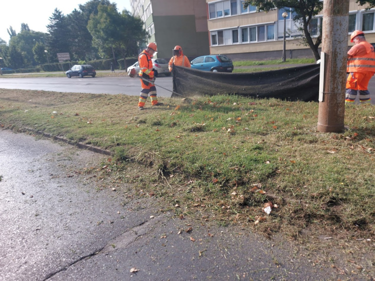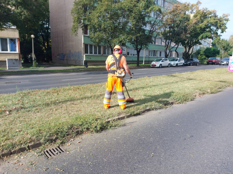 Nyírják és kaszálják a füvet a Ferenc és az Északi körút mentén.