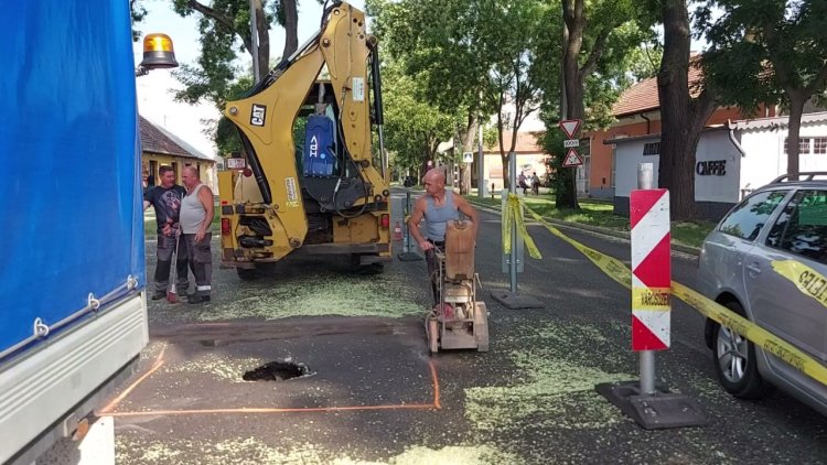 Megsüllyedt az útburkolat a Szent István és a Honvéd utca csomópontjában.