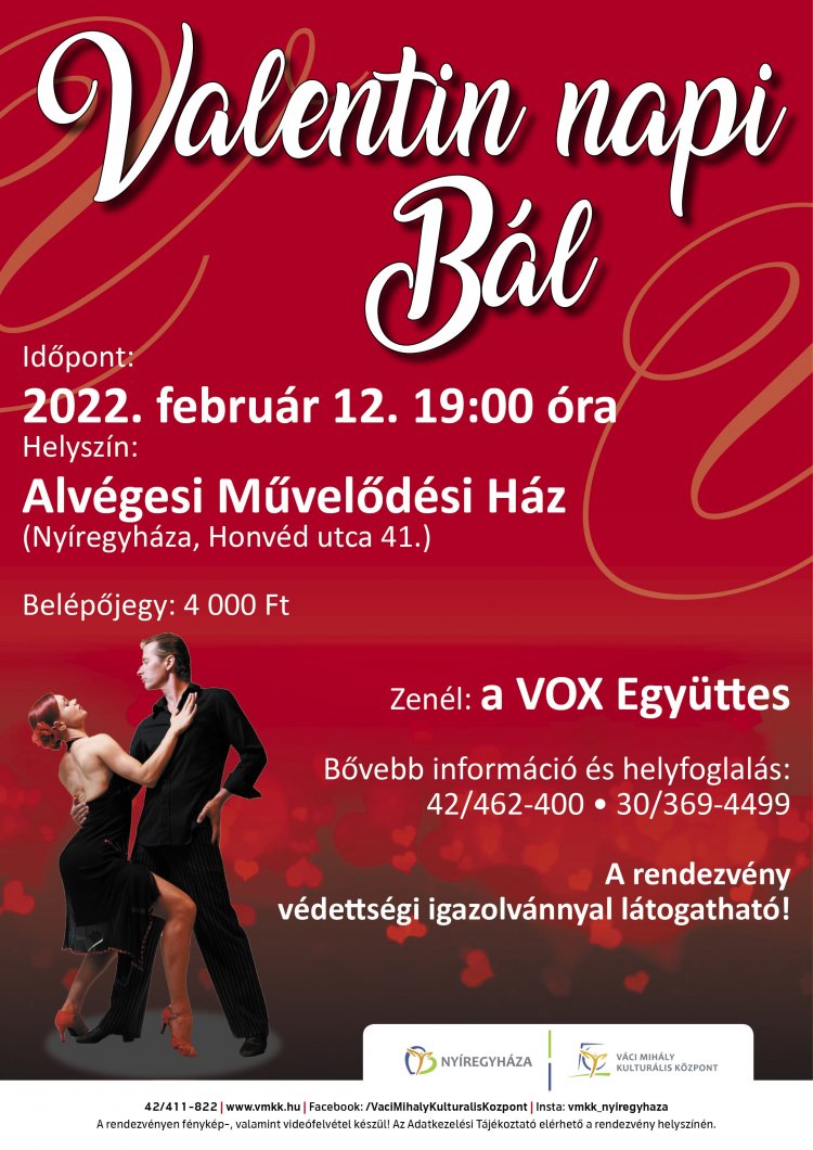 Zenés-táncos rendezvényre várják az érdeklődőket február 12-én az Alvégesi Művelődési Házban. A zenét a VOX együttes szolgáltatja. A bálon cak védettségi igazolvánnyal lehet részt venni.
