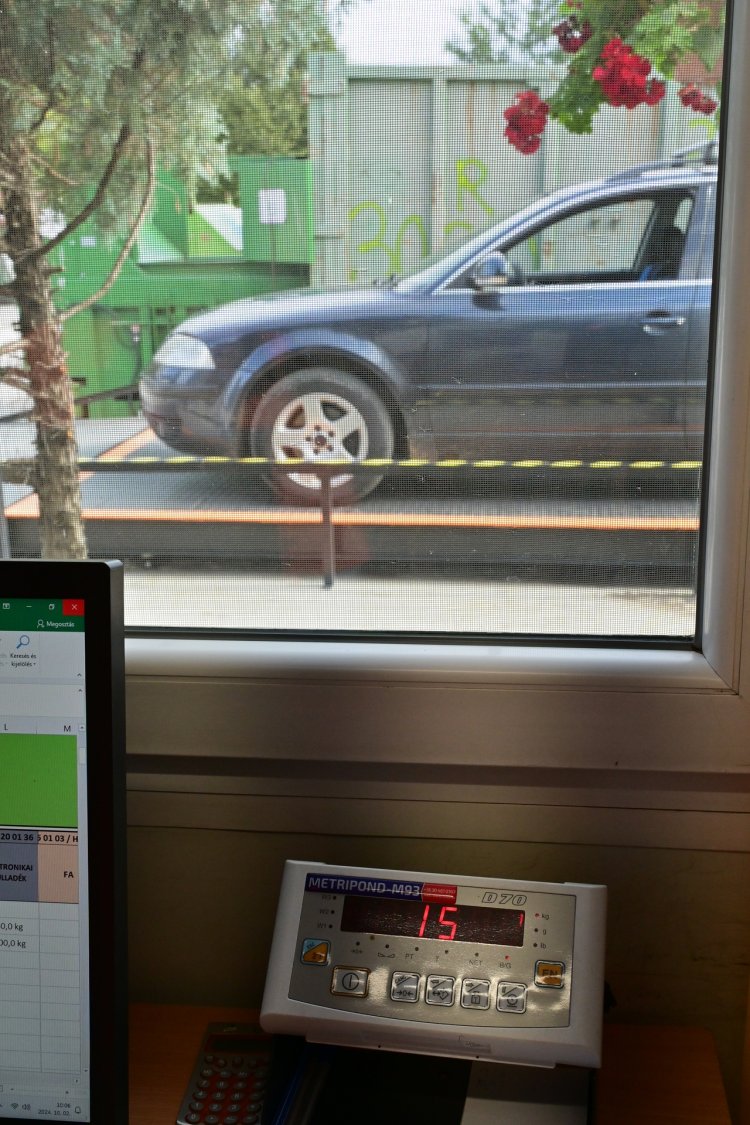 - Mindenképpen felhívnám a figyelmet, hogy egy lakcímkártyával indulunk. Amennyiben az rendben van, akkor a hídmérlegen lemérik a beérkező hulladékot. És lehetőség szerint, mivel a hulladékudvar a hulladékok fajtánként elhelyezésére szolgál, ezért a mérlegelést is fajtánként kell elvégezni. Tehát, ha valaki hozott papírt és zöldhulladékot, és üveget, akkor ennek külön meg kell állapítani a behozott tömegét, illetve súlyát, hogy mennyit hozott be mindezekből