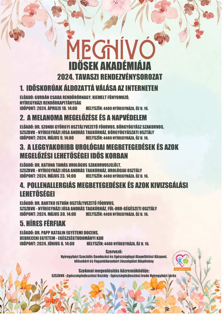 Hogyan kerüljük el, hogy áldozattá váljunk, milyen a megfelelő napvédelem, válaszol az urológus, előadást tart a pollenszakértő és megismerkedhetünk híres férfiakkal. Az Idősek Akadémiája színes programsorozattal várja az érdeklődőket.