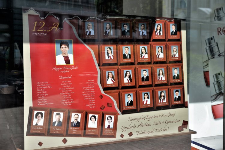 Bár idén nem hagyományos módon ballagtak a végzős középiskolások, sok osztály azért elkészítette a tablóját, amelyek most a belvárosi kirakatokat díszítik. (Fotók: Trifonov Éva)