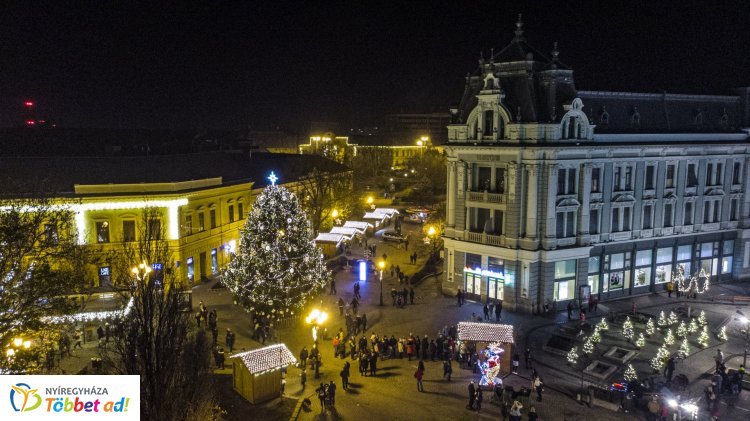 Az adventi forgatag vasárnapi nyitónapján kapcsolták fel az ünnepi fényeket Nyíregyházán, melyeket a magasból Kohut Árpád örökített meg nekünk.