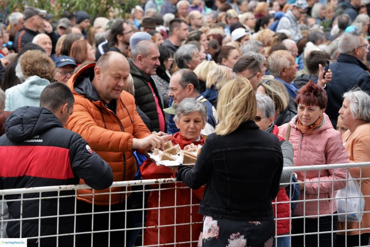 – Tisztelt hölgyeim és uraim, kedves nyíregyháziak! Szeretettel köszöntök mindenkit, remélem, mindenki jól érzi magát! Én tegnap a hivatalos programokon mindannyiunk nevében azt mondtam a hozzánk látogató testvér- és partnervárosaink vezetőinek, hogy köszönjük, hogy megtiszteltek bennünket és velünk ünnepelnek. A barátok jóban-rosszban együtt vannak, itt most csupa jó dolog történik, és természetesen ez egy alkalom arra, hogy mind a hat testvérvárosi delegációval tudtunk beszélni arról, hogy hogyan építsük tovább a testvérvárosi kapcsolatokat. Most már talán nyolcadik éve a programunk nagyon fontos része a város tortája. A sipkaysok megsütik, a tanárok és a diákok együtt. Én az első tortánál azt kértem, és azóta nem is szóltam bele, hogy a tortát úgy süssék meg, hogy abban legyen benne mind a három torta, ami Magyarországon akkor nyolc ország tortája volt, és három a mi megyénkből. A szabolcsi alma, a szatmári szilva és a milotai diótorta – fogalmazott köszöntőjében a várostorta kínálása előtt dr. Kovács Ferenc, Nyíregyháza polgármestere.