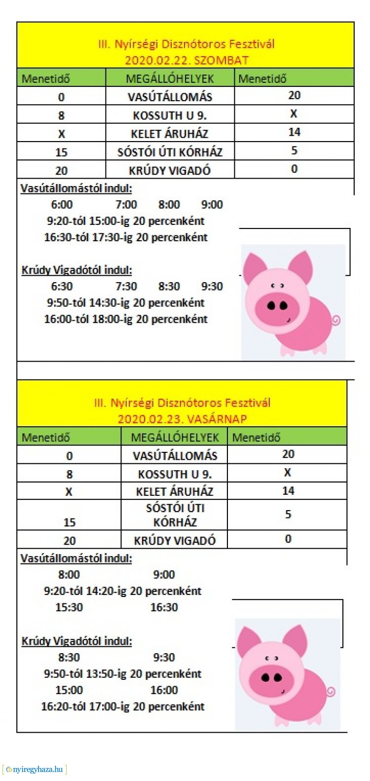 Február 23-án reggel 6 és este 18 óra között 20 percenként ingyenes buszjáratok járnak a Vasútállomás és Sóstógyógyfürdő között.