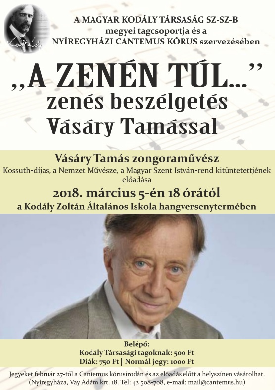 Hétfőn Vásáry Tamás zongoraművész érkezik a Koppenhágát megjárt Cantemus Kóruscsaládhoz. A világhírű művésszel a Kodály Zoltán Általános Iskolában találkozhatnak a zenebarátok.