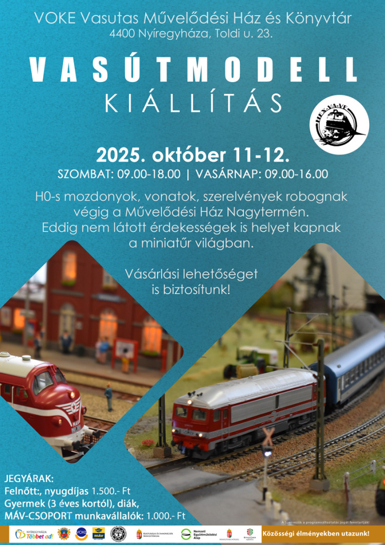 A Vasutas Művelődési Ház és Könyvtár október 11-én és 12-én vasútmodell kiállításra várja az érdeklődet.