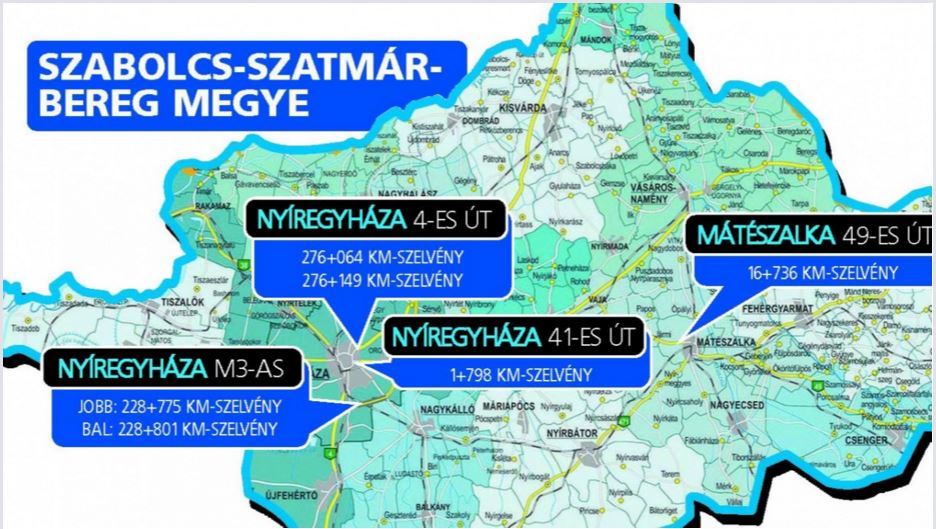 Az ORFK helyszínlistája alapján Szabolcs-Szatmár-Bereg megyében hat fix telepítésű kamerát szereltek fel, ebből Mátészalkán egyet, Nyíregyházán (ezek helyét a térkép mutatja) pedig ötöt. A tájékoztatás során megtudtuk, a VÉDA rendszer kiépítésére azért volt szükség az egész országban, mert a közúti balesetek többnyire emberi tényezőre, a közlekedési szabályok megszegésére vezethetők vissza.