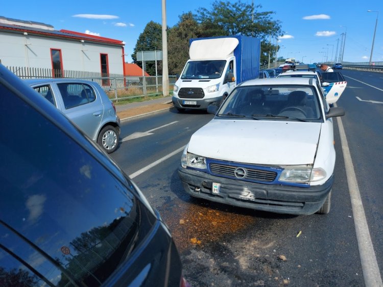 Egy román rendszámú autós a piros lámpánál megállt, a mögötte lévő autós viszont ezt későn észlelte és belement. Az autósok a felelősség kérdésében nem tudtak megegyezni, ezért a rendőrök segítségét kérték. Az okozó jármű sofőrje az intézkedés végén ráadásul a mögötte álló, megkülönböztető jelzést használó gépkocsiba is beletolatott.