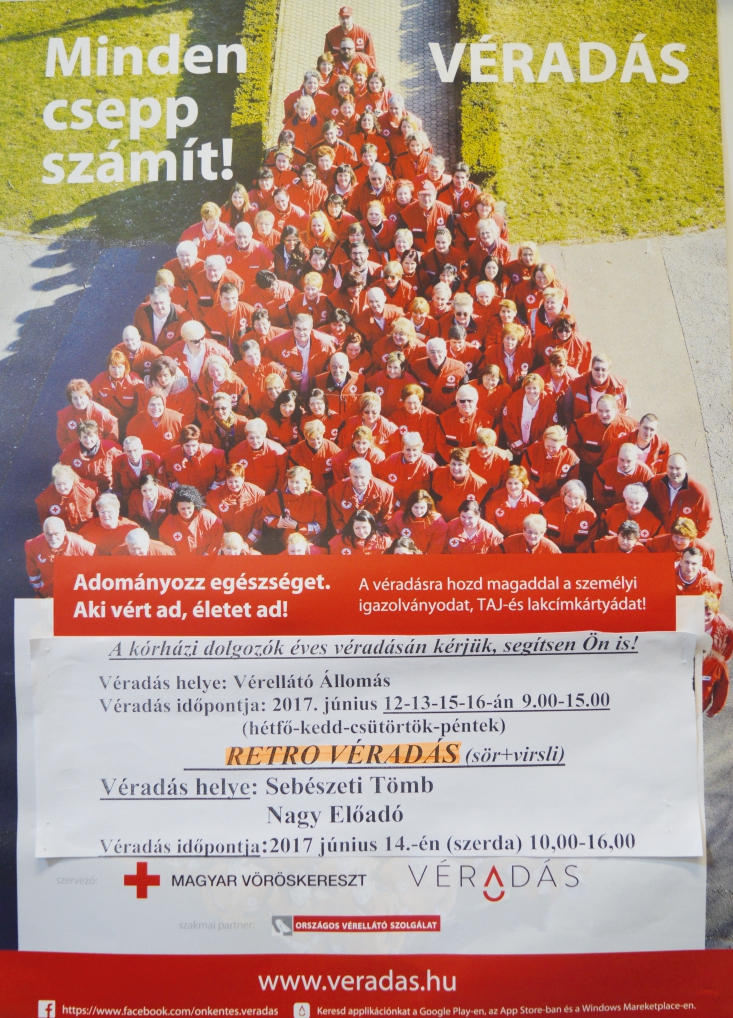 Június 12. és 16. között ismét megrendezik az éves véradást a Jósa András Oktatókórházban.A kórház munkatársain kívül is várják a segíteni vágyókat a Magyar Vöröskereszt Szabolcs-Szatmár-Bereg Megyei Szervezetének dolgozói.