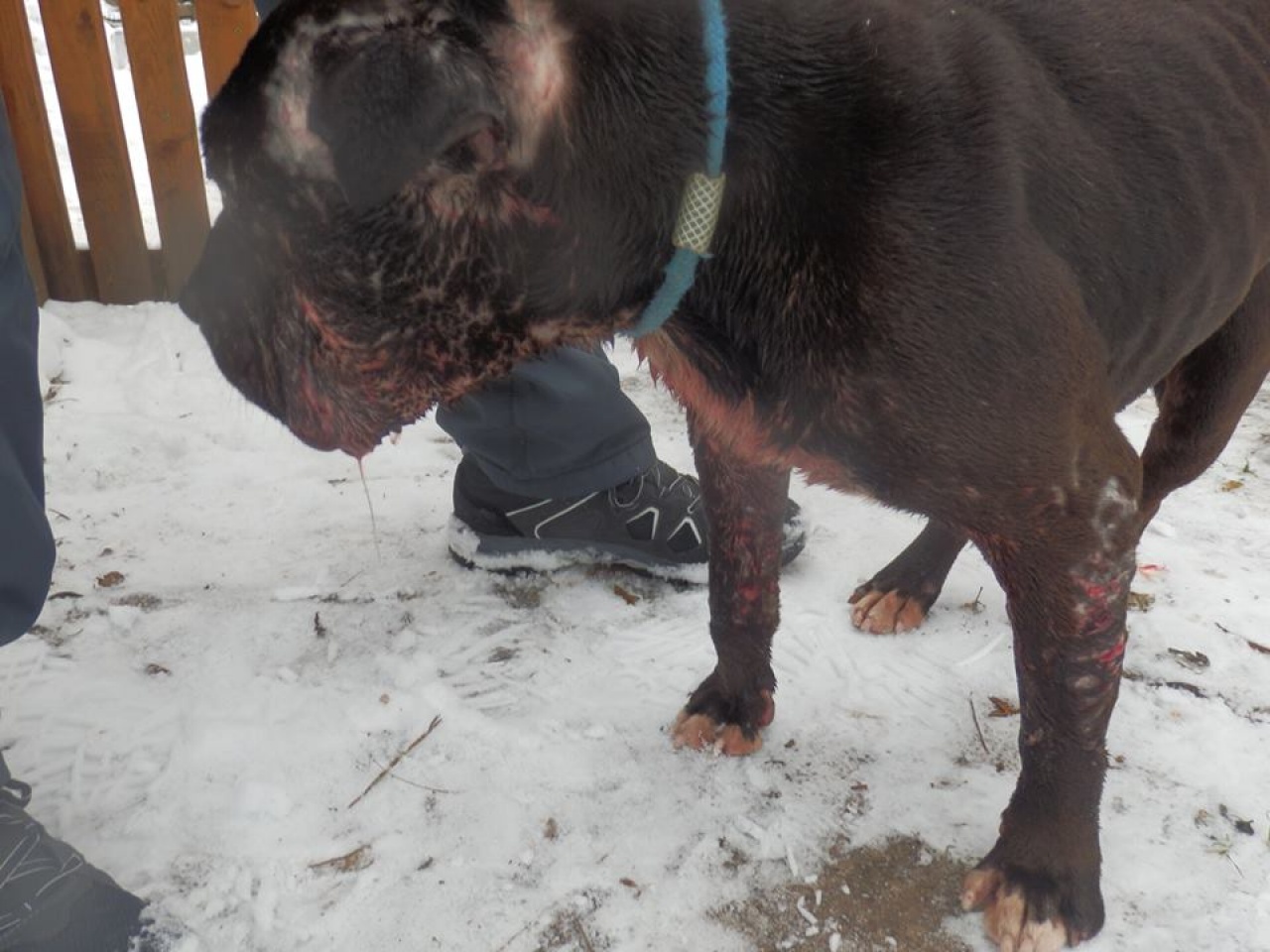 Az alapítvány munkatársainak helyszínre érkezésekor a sérült állat a bejelentő tanyájának a kapuja előtt ült sokkos állapotban. Az állat a vérveszteségtől kábán, félve, de barátságosan fogadta a közeledést, majd minden gond nélkül sikerült behelyezni az állatmentőbe. A helyszínre kiérkező rendőrök gyors és alapos adatfelvétele, vizsgálata után elszállították a sérült kutyát az alapítvány állatotthonába, ahol azonnali ellátásban részesült. Meggyötört testét állatorvos gondjaira bízták. A sokktalanítás, az antibiotikum és a sebkezelés után egy steril, előmelegített helyet alakítottak ki a számára. A jószág testén több mint negyven frissen harapott sebet láttak el. A szívós, nagy teherbírású szervezet hamarosan kiheveri a láthatóan nem először átélt traumát, de lelki rehabilitációja, szocializációja vélhetően sokkal több időt igényel majd.