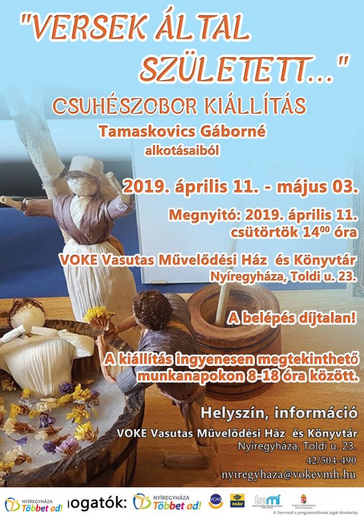 Tamaskovics Gáborné alkotásaiból nyílik kiállítás április 11-én a VOKE Vasutas Művelődési Házban. A tárlat május 3-ig látogatható.