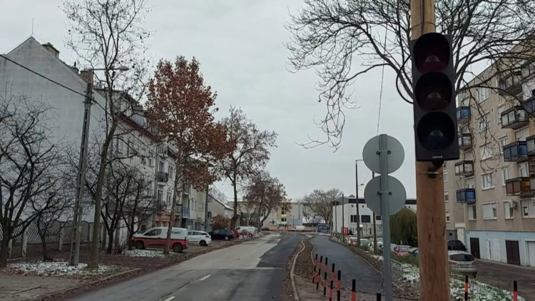 Veszélyre hívja fel a figyelmet a sárgán villogó jelzőlámpa a Móricz Zsigmond és Szarvas utcai csomópontnál
