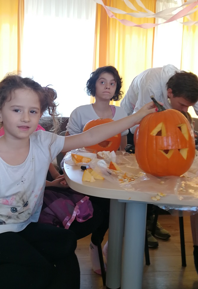 Október utolsó napján természetesen a Halloween sem maradhatott el. A délelőtt folyamán vicsorgó töklámpát készítettek a gyerekek, melyben az Első Nyíregyházi Lions Club önkéntesei segédkeztek.