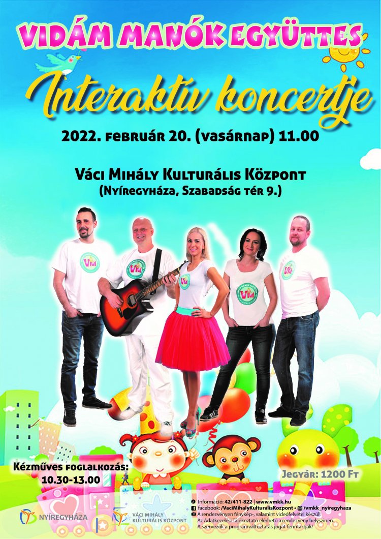 A Vidám Manók interaktív koncertje várja a családokat február 20-án, a Váci Mihály Kulturális Központban. Az érdeklődők kézműves foglalkozáson is részt vehetnek.
