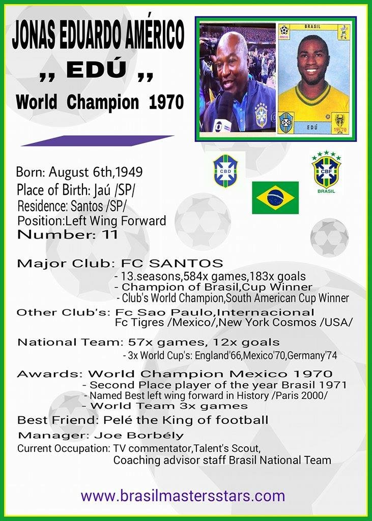 Edú jelenleg is aktívan focizik és gálamérkőzéseken szerepel a Brasil Masters All Star csapattal, amelynek generalmenedzsere szintén Joe Borbély, aki a múltban Pelét is menedzselte. Mindezek mellett Edú a fiatal tehetségek felfedezésével is foglalkozik, szakértő a Brasil Sport TV-nél, és óriási megtiszteltetésként a brazil válogatott szűkkörű edzői csoportjának is a tagja, Carlos Dunga mellett. Büszkeség, hogy egy ilyen legendát láthatunk hamarosan vendégül a Szparinál!