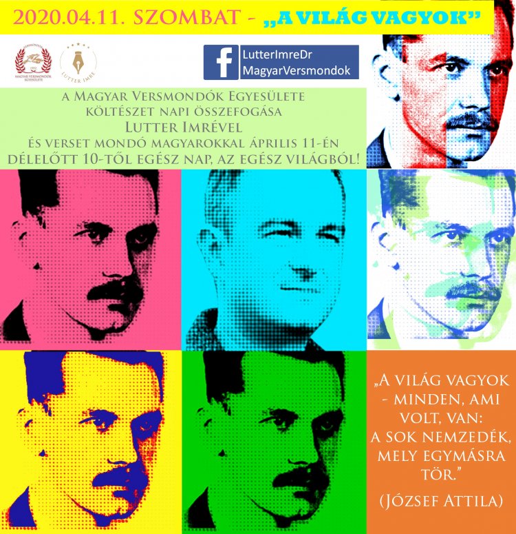 Világméretű költészet napi összefogást hirdetett Lutter Imre és a Magyar Versmondók Egyesülete április 11-ére, a költészet napjára: "A világ vagyok" címmel, József Attila – A Dunánál című versének idézetével indítja el egész napos online programját szombaton, amelyben kétórás bejelentkezések közben közel száz külföldön élő magyar mond majd verset.
