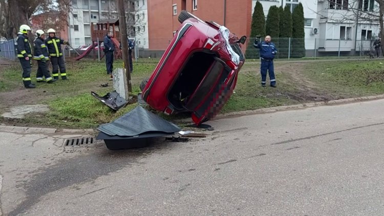Villanyoszlopnak ütközött, majd felborult egy autó a Mikszáth Kálmán – Czuczor Gergely utcai kereszteződésben csütörtök délután.