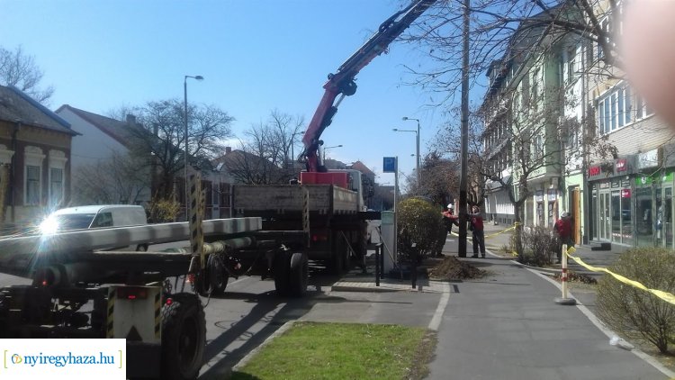 A Széchenyi utcán villanyoszlopok cseréjét végezték forgalomkorlátozás mellett.