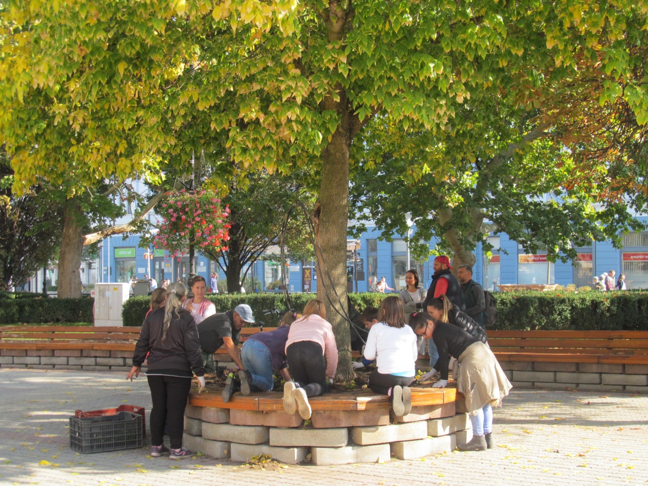 800 tő virágot ültettek el a borbányai Petőfi Sándor és a Bem József Általános Iskola diákjai a Kossuth és a Szent Miklós tereken.