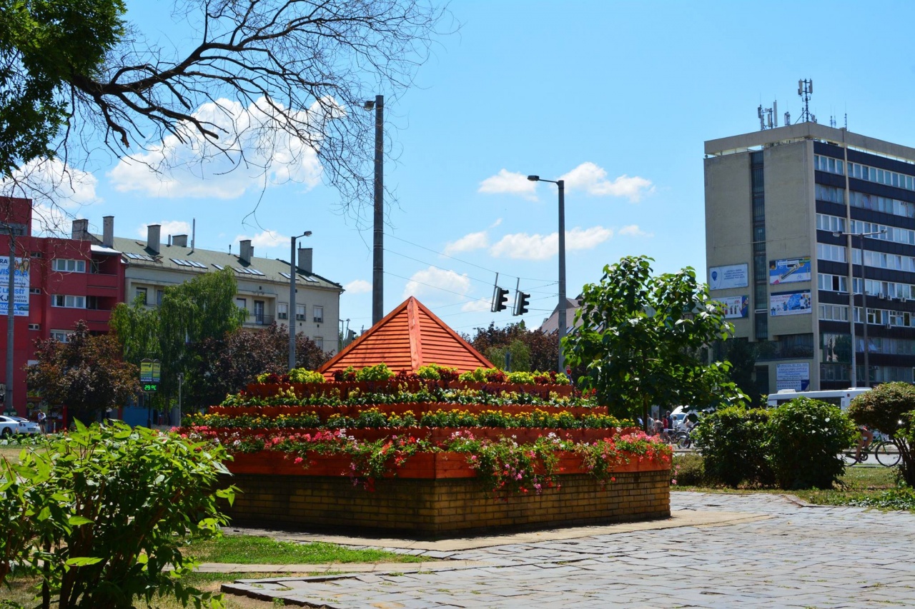 A Rákóczi utcán, a sárga dombház előtti téren évek óta használaton kívül állt az a zenélő szökőkút, amelynek hangja korábban több lakó életét zavarta. A NYÍRVV Nonprofit Kft. szakemberei a szökőkutat egy 25 négyzetméteres, négyemeletes virágpiramissá alakították át.