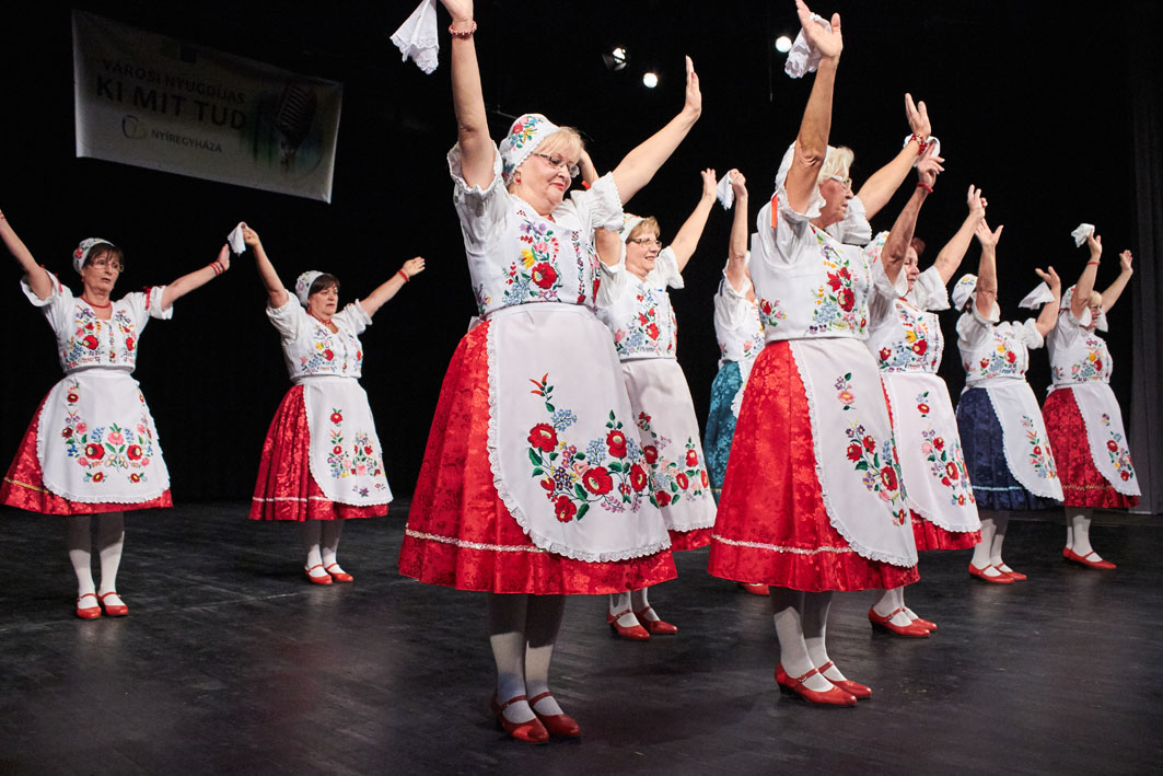 Immár ötödik alkalommal rendezte meg a Nyugdíjas Városi Ki mit tud?-ot az Elsõ Nyírségi Fejlesztési Társaság és az Idõsügyi Tanács. A Váci Mihály Kulturális Központban hat kategóriában közel 50 produkciót mutattak be a szépkorúak.
