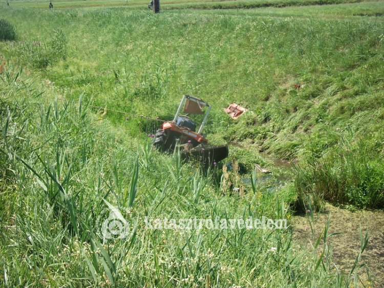 Vízelvezető árok fűkaszálási munkálatai közben borult árokba egy kistraktor Kemecsén