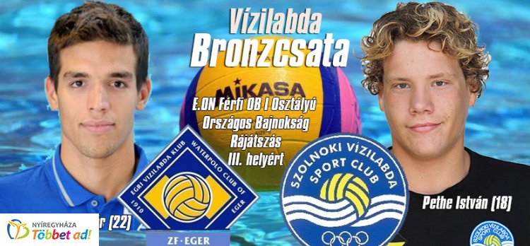 Nyíregyházi nevelésű fiatalok részvételével zárulhat az E.ON férfi vízilabda bajnokság bronzcsatája. A múlt héten alakult ki a döntő párosítása miután a Pethe Istvánt soraiban jegyző szolnoki csapat nagyot küzdve alul maradt a Ferencvárossal szemben. A másik ágon az Eger "várát védő" Csiszár Boldizsár és csapata nem tudott „vitézkedni” az OSC-vel szemben így alakult ki a bajnoki bronzcsata párosítása. Mindkét csapat a közelmúltban búcsúzott a nemzetközi kupaküzdelmektől, ami azt is jelenti, hogy a szezon utolsó feladata lehet a bajnoki bronz megszerzése. A tét az érem mellett a nemzetközi kupaszereplés is, ugyanis a bajnokság harmadik helyezettje indulhat Bajnokok Ligájában.