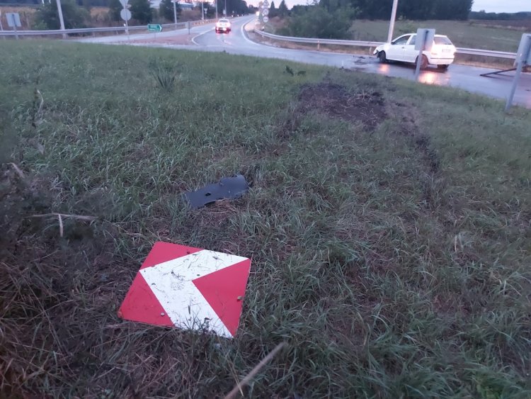Több KRESZ- és terelőtáblát is kitört, majd a 403-as főút körforgalmában, a zöldfelületen is keresztülhajtott egy személygépkocsi csütörtök este.
