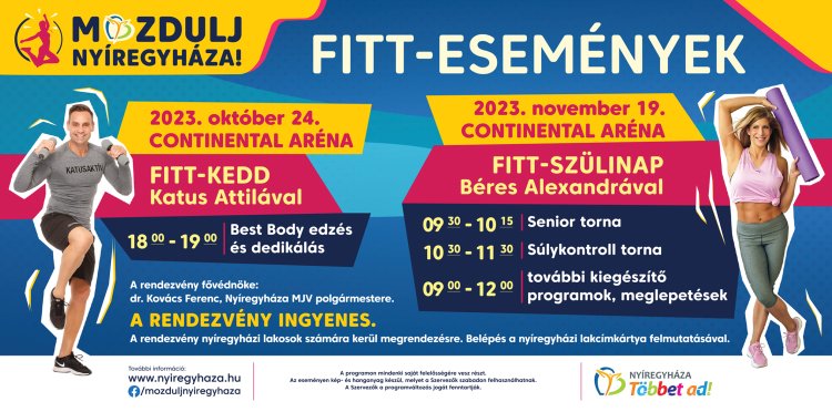 Az önkormányzat által meghirdetett Mozdulj Nyíregyháza programsorozatban október 24-én Katus Attila, november 19-én pedig Béres Alexandra segít majd abban, hogy fittebbek legyünk.